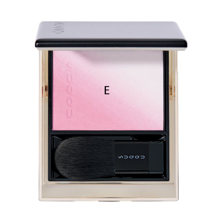 重ねるほどに肌の血色と透明感が高まるライラック×アイシーパープル。ブラーリング カラー ブラッシュ 06 ¥6,600(SUQQU)