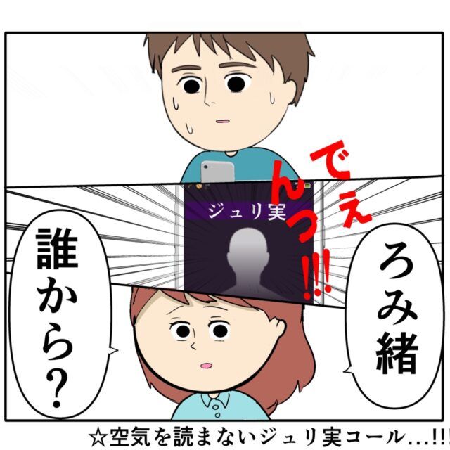 このタイミングでまさかジュリ実さんから電話がかかってくるなんて。ろみ緒さん、冷や汗だらだらですね。