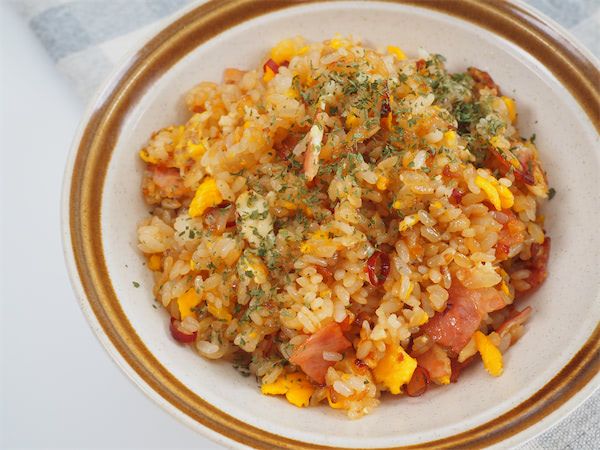 【リュウジレシピ】え、ペペロンチーノな炒飯!?ニンニクとベーコンの旨味で飯を焼き付けろ!あぁ香ばしい♡