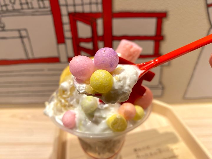 ぽりぽり、ふわふわ、もちもちなどトッピングのさまざまな食感が見事なバランスで楽しめる仕上がり。