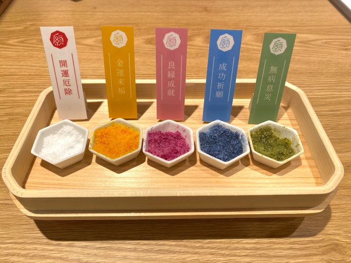 受け取り時には、トッピングの仕上げに使用する「願いの塩」を5種類の中からセレクト。
