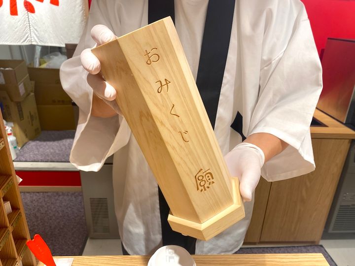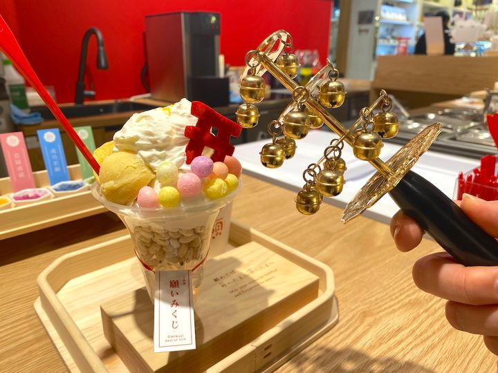 「一粒万倍セット」、「御饌パフェ」はオーダーすると、おみくじを1回引くことができます。運試しはテンションが上がって楽しい!