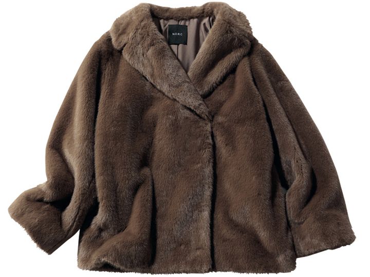 N.O.R.C レディ味の強いショールカラーも立体シルエットでアクティブ感をプラス。着流しても可愛い。 ブラウンショートコート¥31,900(ノーク)