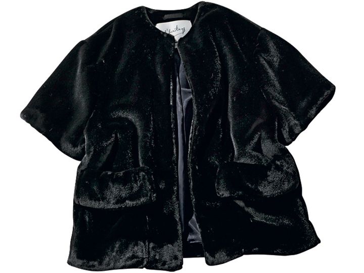 l’héritage martinique アウターとして以外にも、室内ドレスアップにも使える半袖は使い勝手の幅も広がる。 黒ファーボレロ¥46,200(レリタージュ マルティニーク/マルティニーク ルミネ横浜)