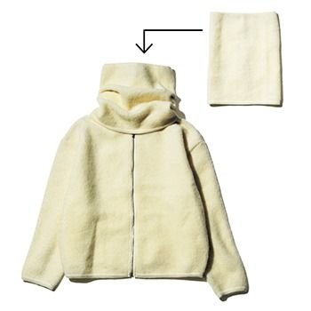 ジャケット、スヌード/ともにスローン(ザ ショップ スローン 新静岡セノバ店) やや起毛感のあるポコポコとした生地が、顔をやさしく包み込む。