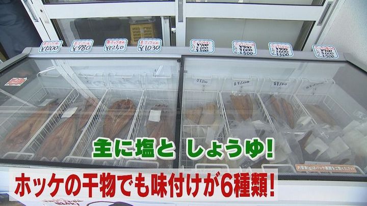 ホッケの干物は塩やしょうゆが一般的ですが、こちらでは6種類の味付けがあります。