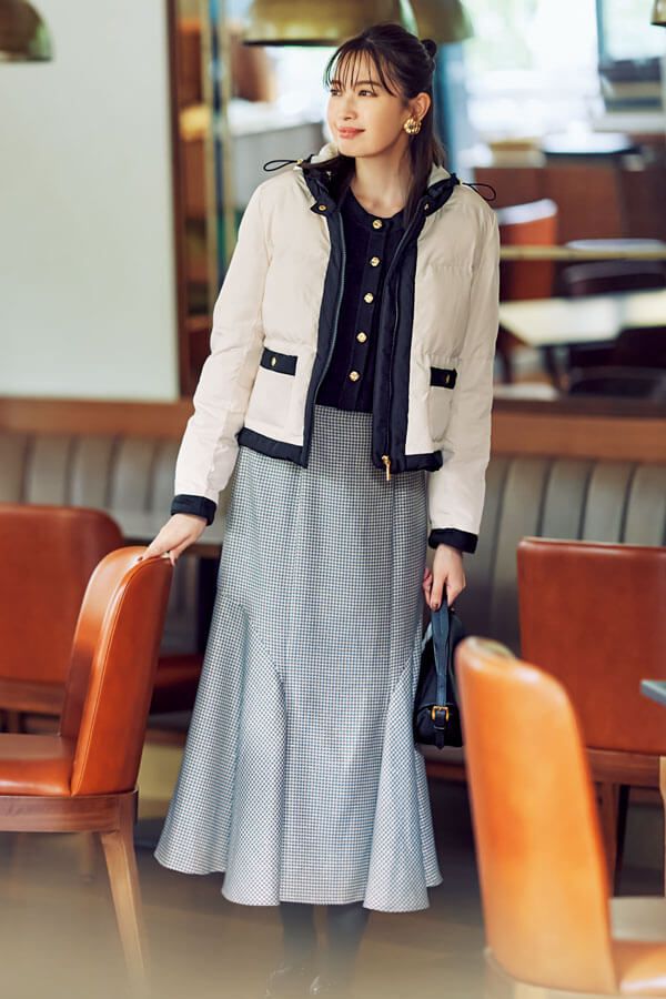 3. ジャケットライクな配色ダウンならオフィス向きのきちんと感を実現<1/20のコーデ>