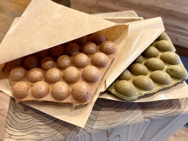 初めて娘と来店した時、娘が一番気に入っていたのが焼きたてワッフル。ポコポコと可愛らしい見た目がSNSなどでも人気で、週末は若い人たちや海外からの観光客など、たくさんの方が来店されるそうです。