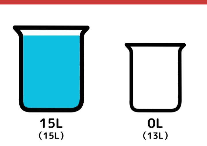 【クイズ】正解できたら一流企業に入社できるかも?「15Lと13Lの容器で4L」をはかるには?