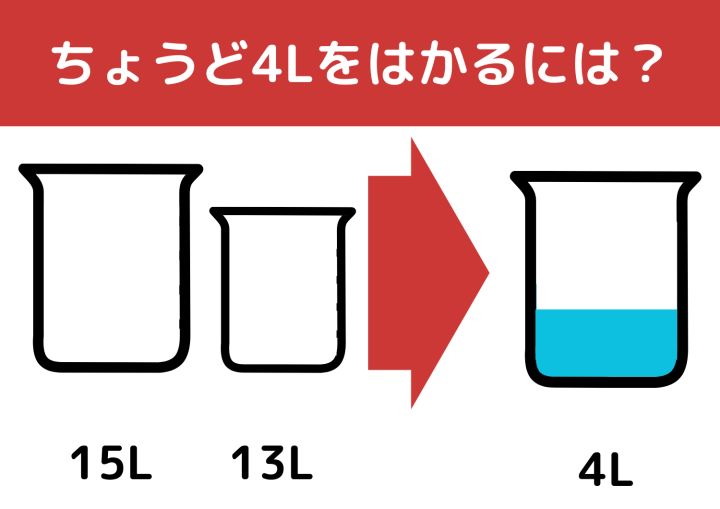 3. 【クイズ】正解できたら一流企業に入社できるかも?「15Lと13Lの容器で4L」をはかるには?