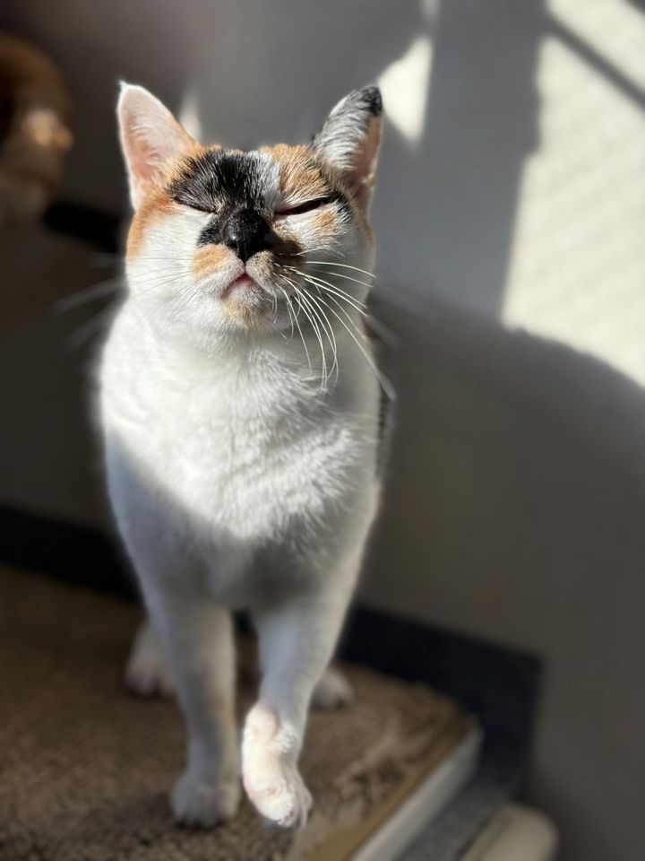 とても凛々しい顔立ちで、誇らしげな顔がとてもかわいいミケ子。ミケ子はエイズ陽性ということですが、人に感染することはありません。また、エイズにかかった猫であっても、環境を整えれば飼育可能です。一生懸命に自分の病気と闘い、お客さんの窮地も救った優しいミケ子はすばらしいですね。