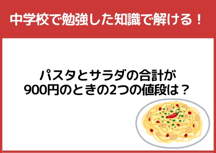 中学校で勉強した知識で解ける!「パスタとサラダの合計が900円のときの2つの値段」は?