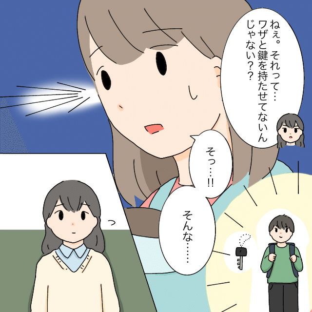 それを聞いたカイトくんママに、「ねぇ、それって・・わざと鍵を持たせてないんじゃない?」そう言われて「そっ・・!!そんな・・」と思わず絶句してしまいました。