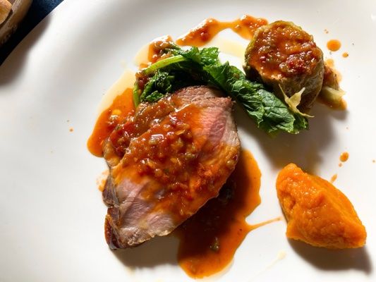 スモークがいい香りで、お肉の食感がとてもいい!ソースも凝っていておいしい。シューファルシーというのも初めて食しました!かぼちゃのムースはとても滑らかで甘くおいしい!大満足です!