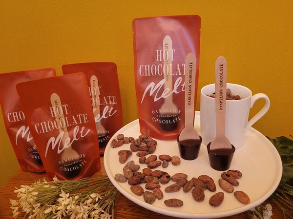 溶けかけのチョコレートをそのまま食べるのもオススメだそう。チョコレート本来の味わいを楽しみつつ、少しずつ味わいの変わるホットチョコレートも楽しめる、何度もおいしい一品です。