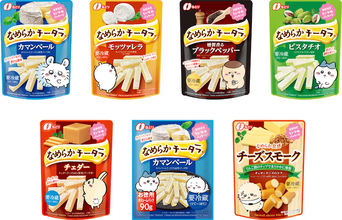 大人気キャラクター「ちいかわ」とコラボした「なめらかチータラ」シリーズが、今年も数量限定で登場!今回は7種類のラインナップで、パッケージもさらにかわいくなっています♡おやつやおつまみに買っていた「なめらかチータラ」ですが、いっそう手に取りたくなっちゃいますね♪
