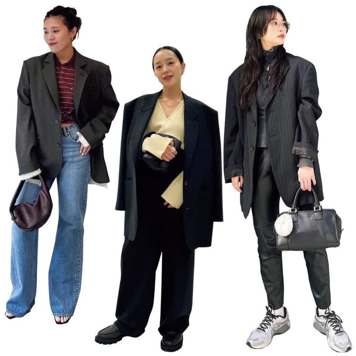 先シーズンのスーパービッグとまではいかなくとも、オーバーサイズのテーラードジャケットは2024年も引き続き人気継続。ストンとしたボクシーなシルエットをバサッと羽織れば、どんなコーディネートもこなれて見える! それでは早速見ていきます。