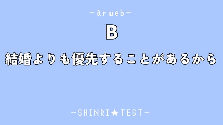 Bを選んだあなたは………結婚よりも優先することがあるから
