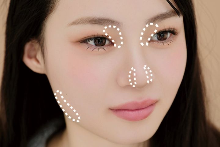 鼻根と鼻先、フェイスラインに小さめに塗る。それを指でトントンやさしくぼかして、なじませれば完成!