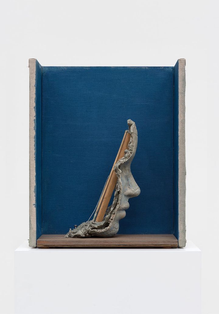 Mark Manders, Nightfall Scene, 2024, Painted bronze, painted canvas, painted wood, iron, painted epoxy51 x 42 x 23 cm©︎ Mark Manders / Courtesy of Gallery Koyanagi