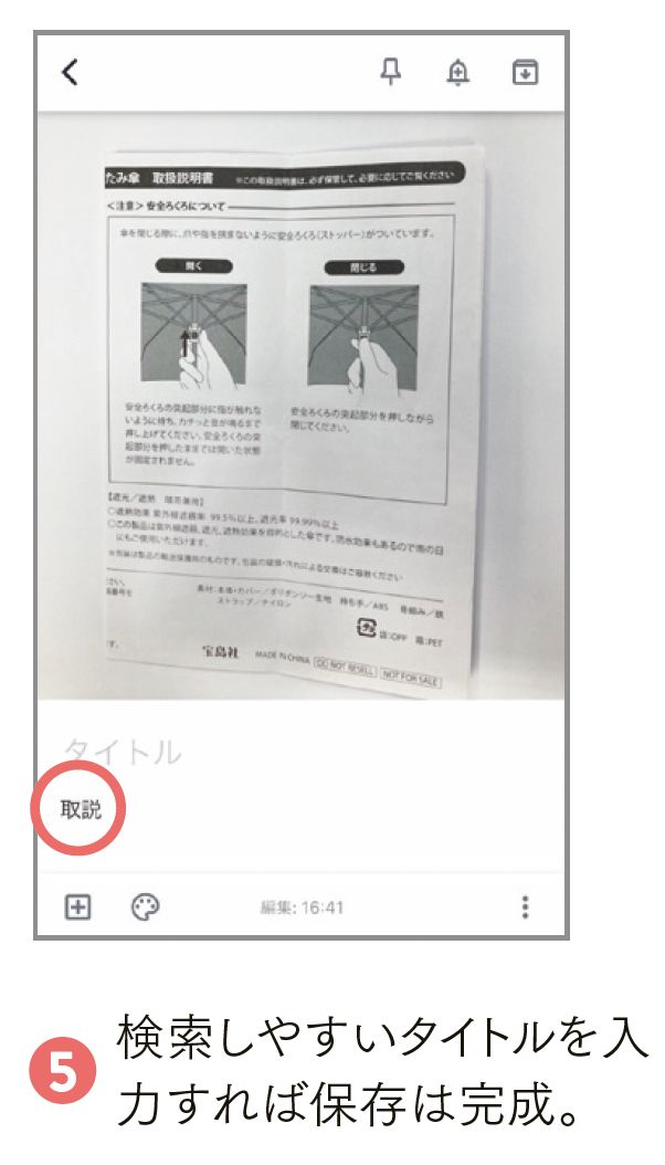 紙そのものではなく、そこに書かれている情報が必要な場合、データ化を。写真を撮ってキーワードなどを付けて、クラウドやスマホのメモ帳に保存しておけば、必要なときに出先からでもすぐに検索できます。