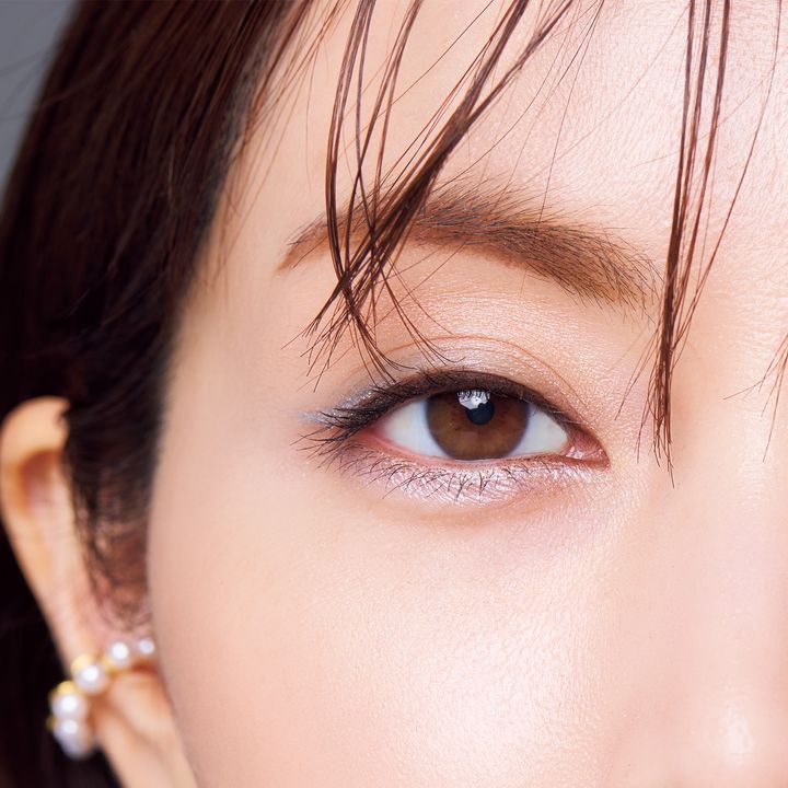 ラメ感のあるシルバーグレーは大人のふっくら感を演出するのに最適。シルバー系のハイライターは顔だけではなく、首筋や鎖骨部分にのせることで骨を綺麗に浮き立たせることが可能。アイラインは目頭から目尻まできっちり引くのではなく、黒目終わりから目尻3mmほど伸ばすと、抜け感とクリア感が増すので大人向け。シルバー系のプランパーは唇の中心に厚めにのせることで立体感が出ます。