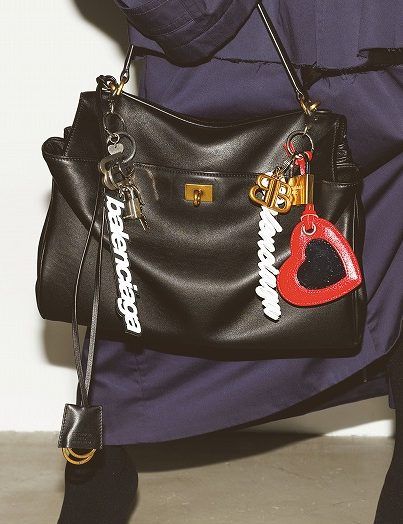 チャーム(右)「パロマ キーリング」¥83,600チャーム(左)「キット キーリング」¥66,000バッグ「ロデオ M ハンドバッグ」¥671,000取り外し可能なストラップ付コート¥506,000スカート¥218,900靴¥243,100※すべて予定価格(すべてバレンシアガ/バレンシアガ クライアントサービス)
