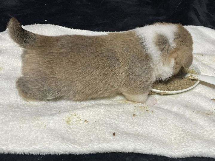 投稿者・ウェルスターレッドコーギー犬舎さんは、家庭犬訓練所が営むペンブロークコーギー専門犬舎。今回は、元気にごはんを食べる子犬の様子を投稿してくれました。