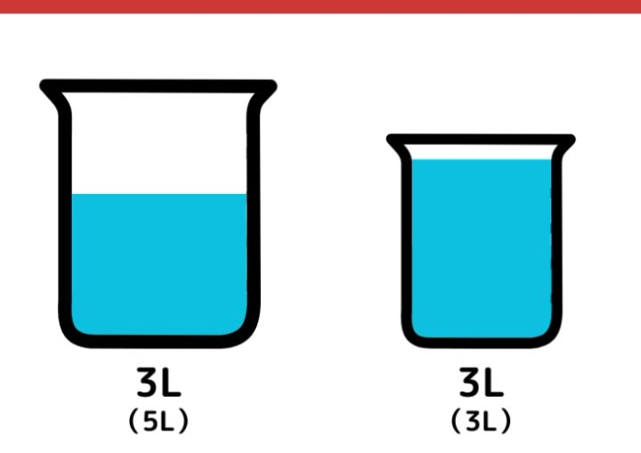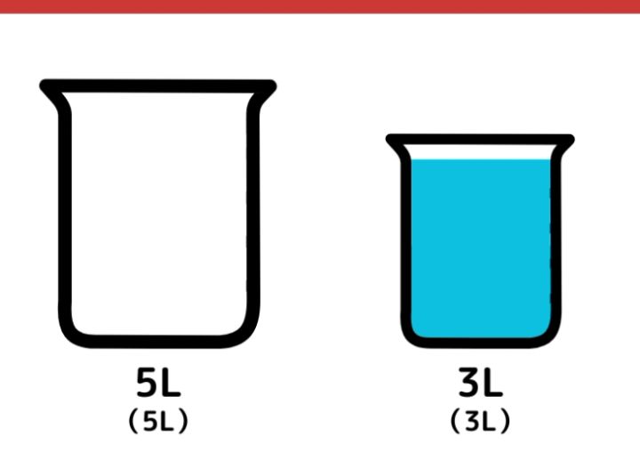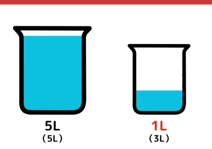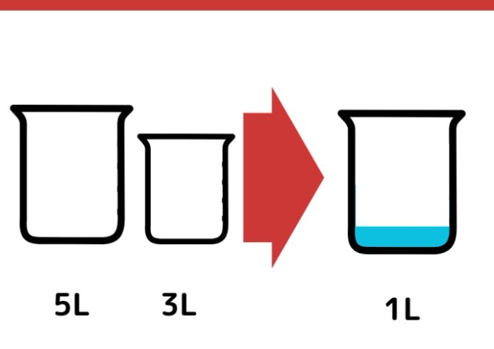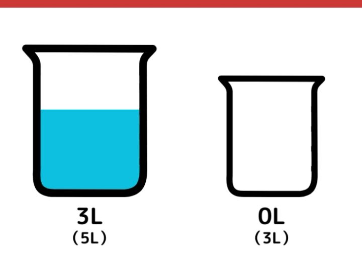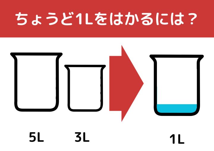水がちょうど1L入る容器が手元にありません。5Lと3Lの容器を使って、ちょうど1Lの水を計る方法を考えてください。