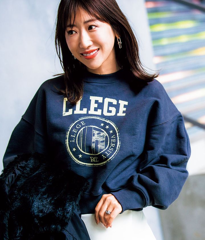 『カジュアルになりがちなスウェットも短か丈×ボリューム袖ならスカート合わせで女っぽく着られる! エッジが効いた韓国服はコーデのスパイスになります。』