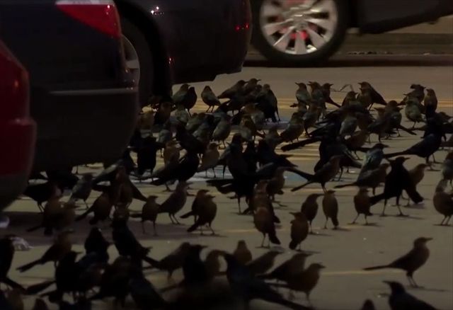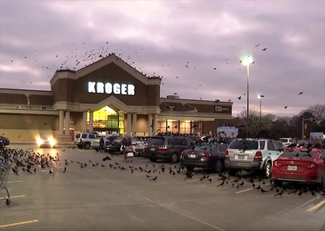 3. まるでヒッチコック!?大量の黒い鳥がスーパーの駐車場を占拠!この世の終わりのような恐ろしい光景に