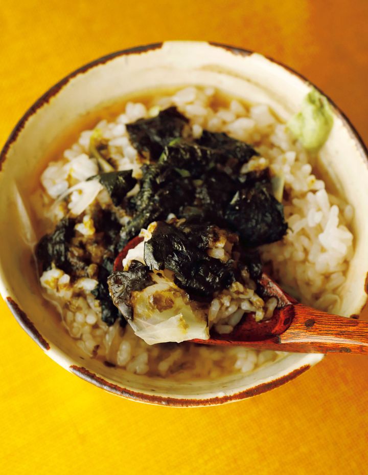 のりが煮溶けただしをご飯にかけ、好みでわさびをのっければ、料亭にも負けない特製だし茶漬けのでき上がり!