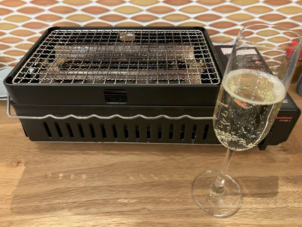 テーブルにあるカセットガス式の炉ばた焼器で、牡蠣やお好みの焼き物を炙りながら食べられるようですが