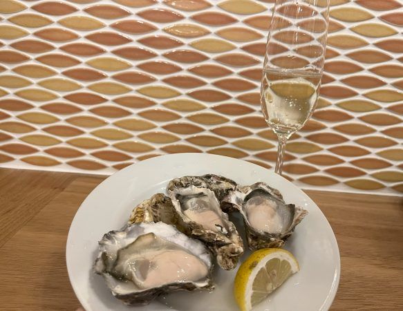 しゅわしゅわのスパークリングワインを頂きながら牡蠣を待ちます。