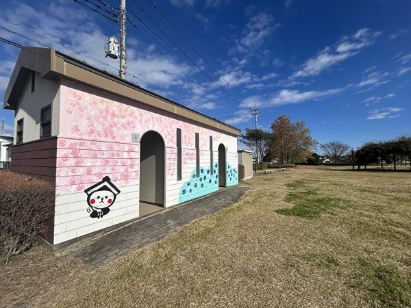 お手洗いは可愛いキャラクターが描かれていました。調べてみると栃木市のキャラクターのとち介くんでした。赤い頬がなんとも愛らしいですね。