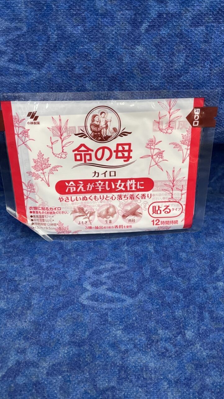 私は住んでいる地域も寒く身体も冷え性のため、『命の母カイロ』をお腹か背中に貼って暖めています。よもぎ、生姜、肉桂の3種の成分で女性にはおすすめです。暑すぎず程よい暖かさも大好きです。