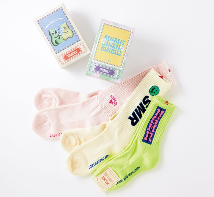 東大門のバラマキ土産用の靴下もありですが、ちょっといい靴下を贈りたいときに。新しいお店ではないけれど、靴下を入れるボックスやステッカーも選べて気が利いてます。(左から)₩24,000、₩20,000、₩15,000 [STORYエディター伊達敦子おすすめ]