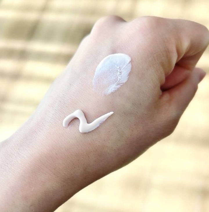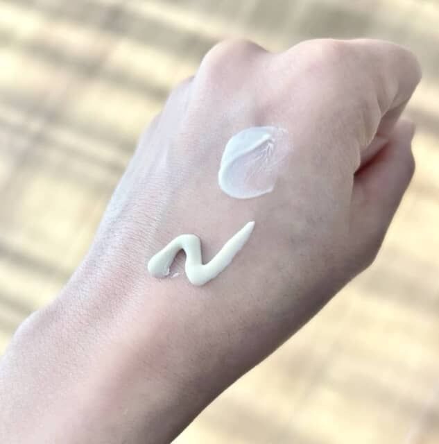▲色はほんのりとしたピンク色。のびの良いテクスチャーなので肌にもやさしく広げられ、みずみずしい使い心地です。これだけでも、ツヤんとした肌が夕方まで感じられました ※個人の感想を含む