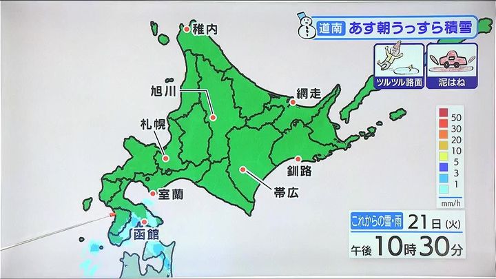 道南はあす22日うっすら積雪