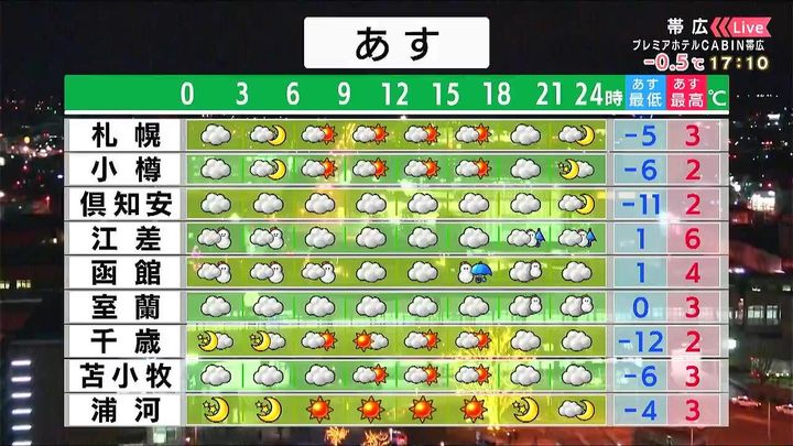 ・あすの札幌の朝昼晩の天気
