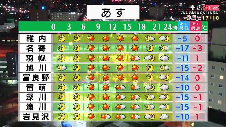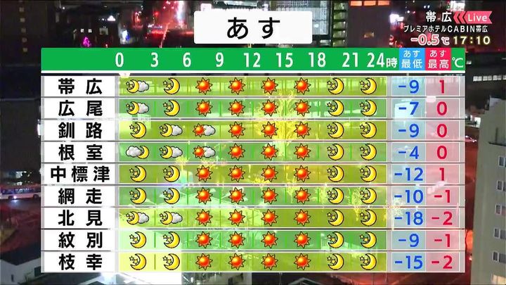 背景は21日午後5時ごろの帯広情報カメラ
