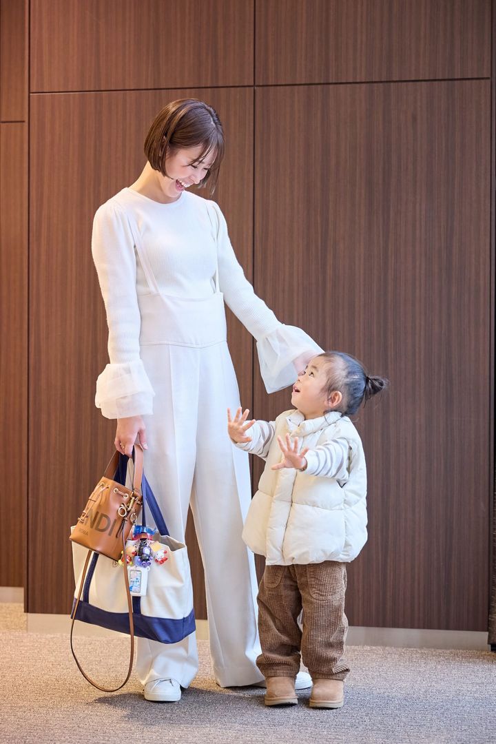 「もともとヒール好きでしたが、子どもが生まれてからスニーカーに初挑戦。普段からきれいめな服を着ることが多く、コーデのハズしに使えるかなと思って選びました。ほんのりスポーティになるところも気に入っていて、いまでは週3履いています」宮本 愛さん/36歳・美容関係勤務(育休中)・161㎝(4カ月の女の子ママ)