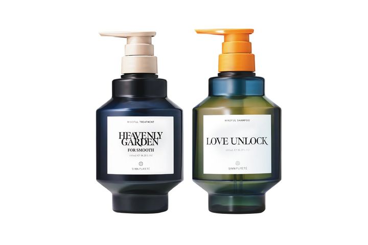 「どこかスパイシーで深みのある極上の香りが魅力的。猫っ毛でも、ぺたんこにならずまとまった髪に」(右から)シン ピュルテ マインドフル シャンプー 480㎖ ¥3,630、同 トリートメント スムース 480ℊ ¥3,630