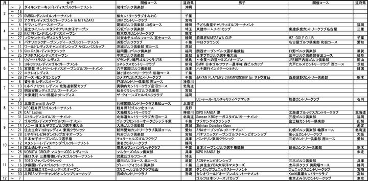 昨年と変更になった点は、開幕2戦目だった「明治安田レディスヨコハマタイヤゴルフトーナメント」が無くなったこと。代わりに、新規大会として7月に宮城県の仙台クラシックゴルフ倶楽部で「明治安田レディスゴルフトーナメント」が開催されます。