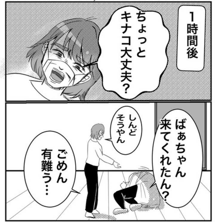 「どうにかしなければ」と思い、実母を頼ります。高齢の母に頼らなければいけない状況に、キナコさんは情けない気持ちでいっぱいになってしまいます…。