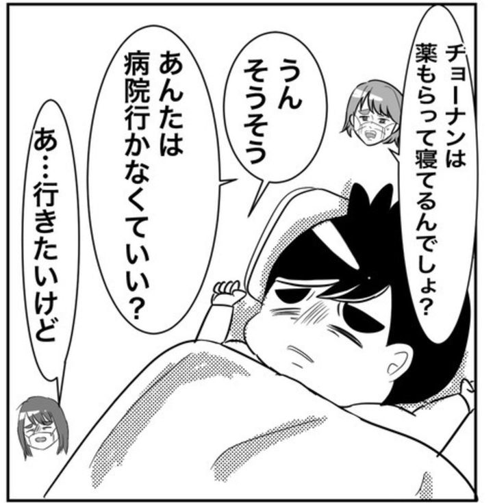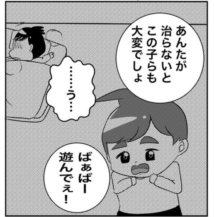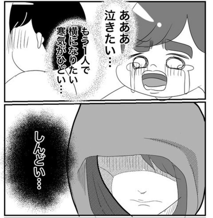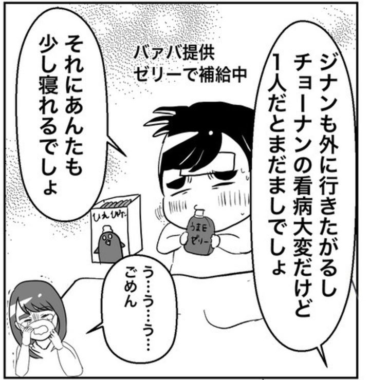 家族のピンチこそ、パートナーの協力は不可欠。体調が悪い中、2人の子どもを見なければならないのは、とてもしんどいですよね。一方で、仕事を休めない事情があるのも理解はできます。
