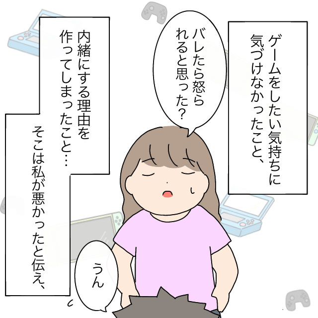 タクくんと話し合うことにした翠さん、「バレたら怒られると思った?」「・・うん」と話し、ゲームをしたい気持ちに気づけなかったこと、そして内緒にする理由を作ってしまったことについては「私が悪かった」と伝えました。