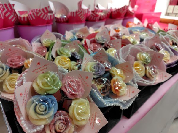 フラワーショップ〈カレンド〉が手掛けるチョコレートショップが初出店。 バラの花がモチーフのチョコレートは見た目に華やか。カラーバリエーションも豊富!