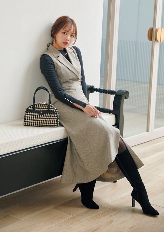 テーラード風ジャンスカで旬なトラッドさを薫らせて