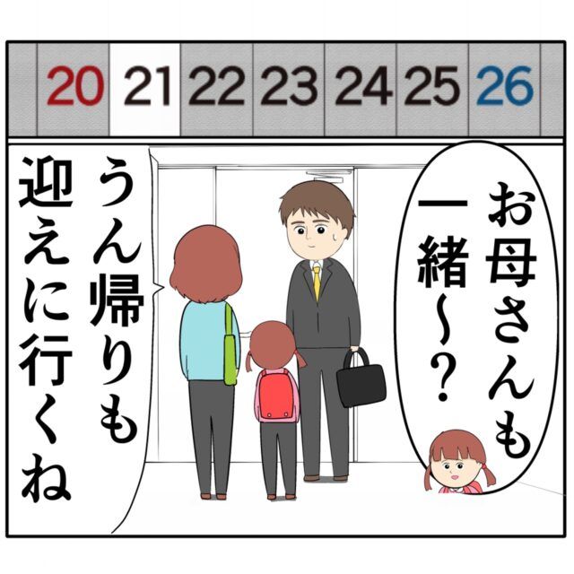 翌朝、めいさんは登校するあかりちゃんに付き添うことにしました。事情を知らないあかりちゃんが「お母さんも一緒~?」と不思議そうに聞くと「うん。帰りも迎えに行くね」とめいさんは答えます。